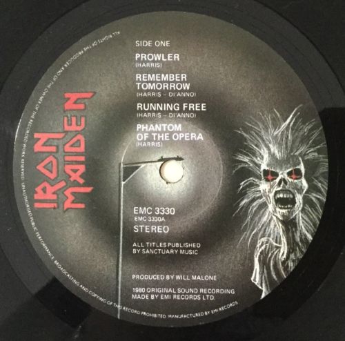 Iron maiden emc 3330 a1 b1 vinyl record lp.