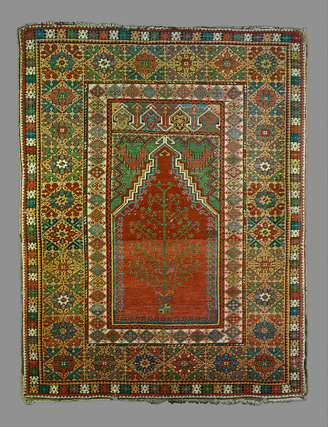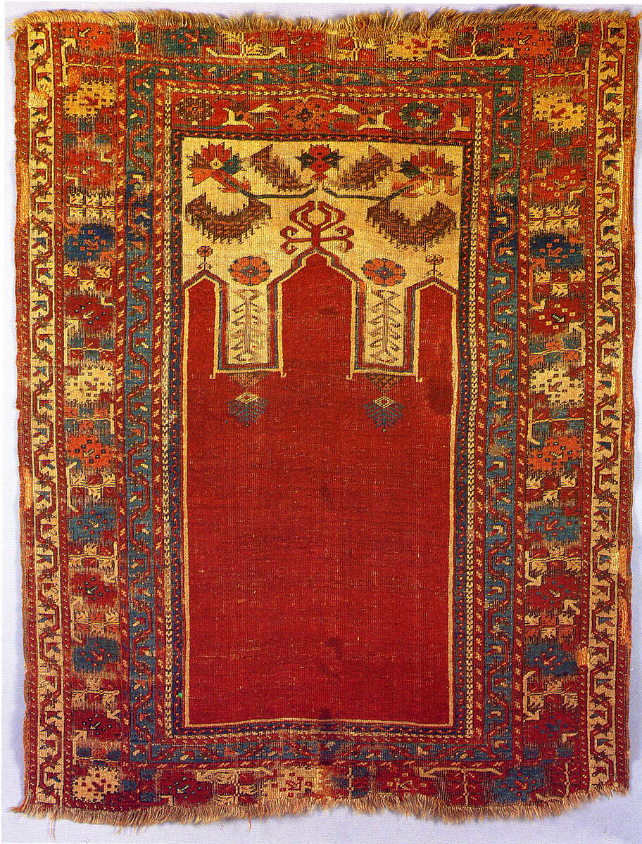One of the earliest carpets to include a triple arched gateway its design probably originated in the ottoman imperial workshop.